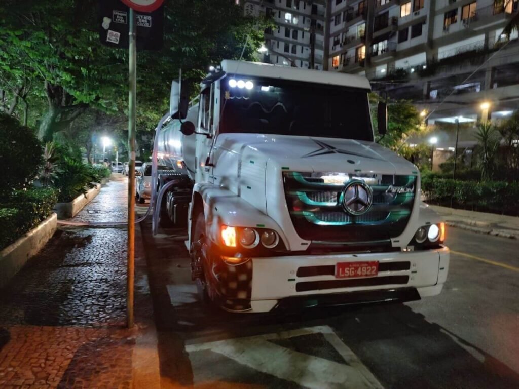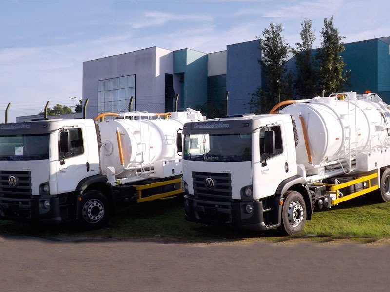 Caminhões equipados com bomba e mangueiras de excelente qualidade, rabo de pavão, bico de pato, chuveirinho e tanque inox, tudo em conformidade com as normas em vigor.